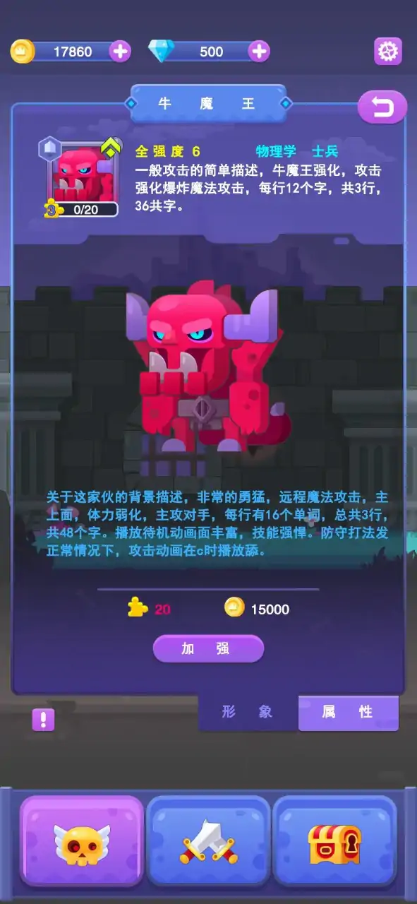 嘿,这个游戏中魔王才是主角!你将化身为一位强大的魔王带领着你的魔物军团抵御勇士们的入侵。一起守卫我们的地下家园,迎接这无尽的挑战吧! 游戏中,你将面对来自世界各地有着高超技艺的勇士们,他们意图摧毁你的地下魔界王国,把你们赶出家园。 但是!别担心!你可是大魔王,你可以召唤无数种强大的魔物,他们将成为你的最忠实的战友。从可爱的小史莱姆到强壮的骷髅王,每个魔物都有独特的技能和特点,让你可以根据不同的战局进行组合和应对。 在征战的过程中,你将探索各个神秘的地下城打造独特的防守路线,收集魔物、宝藏和资源。这些宝藏不仅能够增强你的魔物军团,还能够提升你的魔王技能。通过不断的成长和升级,你将变得越来越强大,成为真正的魔界霸主! 嘿,准备好了吗?那些试图妄想将你赶出家园的勇士已经来了,赶紧集结你的魔物军团迎战吧! 合并玩法,通过合并相同的元素来升级和强化自己的角色或道具。 Roguelike元素,增加了游戏的可玩性和挑战性,你需要灵活应对,制定最佳的战略来取得胜利。 自定义塔防路线,可以根据自己的喜好和策略,自由设计和布置防御塔的路线。