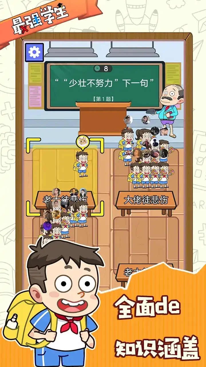 《最强学生》是一款联机益智类问答游戏,由专业人士提供了涵盖了语文、数学、历史、动植物、生活常识等等多种知识,在游戏中你需要通过自己丰富的知识面,完成一轮又一轮的问答,直至站到最后,成为最强学生!