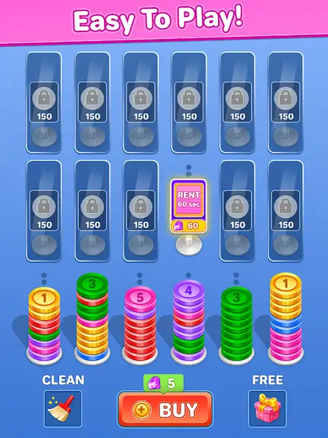 排序和合并硬币。尝试收集最大数量的硬币。 开发您的快速思维和战术意识! 现在免费玩,享受有趣而迷人的网格游戏。要清除面板,请分类并合并硬币。试试你的能力来赢得硬币。每个人的美好时光! 关于游戏 ~*~*~*~*~*~ Coin Sort 是一款街机风格的益智游戏,结合了速度、准确性和策略。在匹配游戏中,您作为硬币分类员的工作是根据面额将无尽的硬币快速分类到适当的行中。准备好测试您的反应能力和决策能力了吗?解锁新关卡,踏上令人兴奋的分类之旅。 连续几个小时,硬币分类和合并将以其令人振奋的策略、反应和解谜组合吸引您。这款令人上瘾的游戏提供永无止境的享受和刺激。准备潜入分类、合并和硬币的世界;立即下载,开始您的硬币分类之旅。 随着您越来越自信,在专家模式下承担最困难的分类任务,从适合初学者的方法开始,以提高您的能力。 特点 ~*~*~*~*~ 容易上手,难于精通。 完成关卡后获得奖励。 适用于平板电脑和手机。 逼真的高品质图形和环境声音。 逼真、令人惊叹且令人惊叹的动画。 流畅而简单的控件。 用户友好的界面和交互式图形。 Coin Sort 不仅仅是一个游戏;这是一次令人兴奋的冒险,可以开发您的视力和大脑,测试您的策略,并奖励您的精确度。Coin Sort 拥有一切,无论您是想要短暂的游戏热潮还是令人上瘾的街机体验。立即下载这款令人兴奋的益智游戏,成为终极硬币分类专家