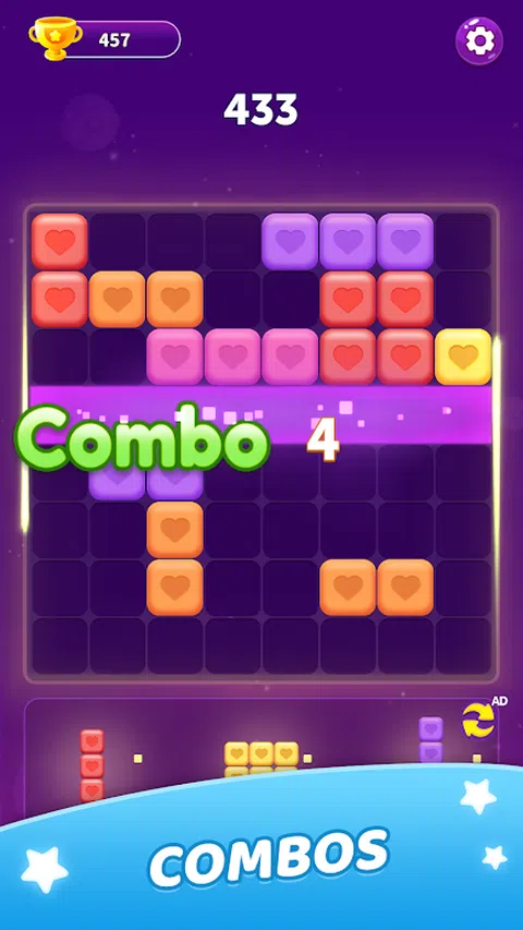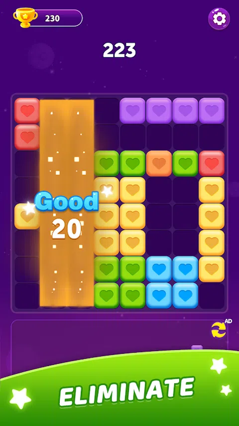 Block Puzzle 是一款引人入胜且令人上瘾的方块消除游戏,可保证让玩家连续几个小时参与其中。这款游戏有众多不同的模式可供选择,每次玩时都会提供独特而令人兴奋的体验。 在方块拼图中,玩家会看到一个网格和一组各种形状的方块。目标是在网格上战略性地放置和排列这些方块,以形成完整的线条并将其消除。随着游戏的进行,方块将变得更加复杂,需要您仔细思考并提前计划移动。 除了令人兴奋的游戏玩法和竞争元素外,《Block Puzzle》还提供令人惊叹的视觉效果和舒缓的声音效果。鲜艳的色彩和流畅的动画增强了整体游戏体验,营造了一种玩家难以抗拒的身临其境的氛围。那么,您还在等什么?立即加入 Block Puzzle 社区,在这款令人上瘾且引人入胜的方块消除游戏中测试您的技能