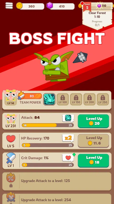 成为王国的保护者,免受地精强盗的侵害! 与地精军队作战,变得更强大!在每场战斗中升级你的英雄,赚取黄金并获得新物品 击败地精的首领 - 食人魔!在与地精军队作战后获得力量并测试你的技能 探索这个游戏的可能性!从一个年轻的巫师开始,升级你的能力,获得新设备,成为地精的威胁 游戏特色: - 可爱的艺术风格 - 能够选择你的英雄的命运 - 对抗地精军队- - 离线游戏 - 成为地精的威胁 享受游戏