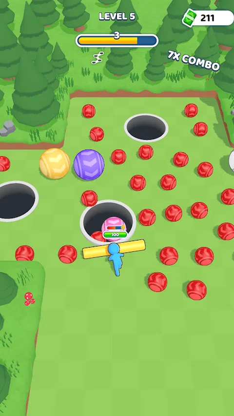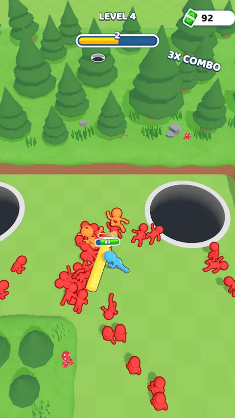 使用推杆将所有敌人推入洞中