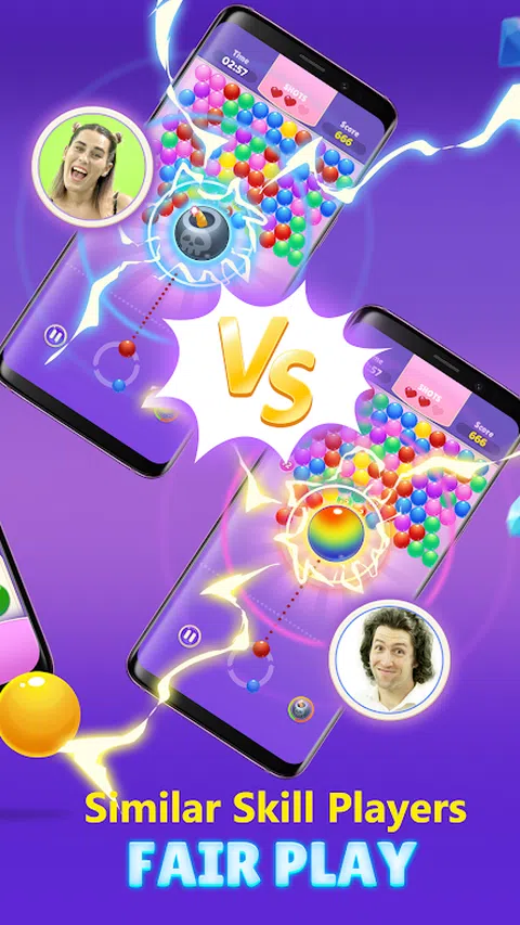 Bubble Smash 是一款令人兴奋的多人游戏,可以发挥每个人的技能。所有用户都会收到相同的 lavout,由玩家决定如何在最快的时间内爆破所有泡泡。这是一种有趣且具有挑战性的方式,可以在您瞄准、匹配和弹出所有球时证明您的战略和战术能力。 如何玩: - 匹配至少 3 个相同颜色的泡泡。 - 将它们炸开并清除面板。 - 只需点击屏幕拖动激光瞄准,抬起手指释放球。 探索这个有趣的功能 - 快速动画和流畅的触摸控制。 - 简单易学,但可能很难掌握,测试你的大脑! - 一轮只需要几分钟,赢得更快! 那么,您准备好了吗? 立即免费下载并开始您的旅程