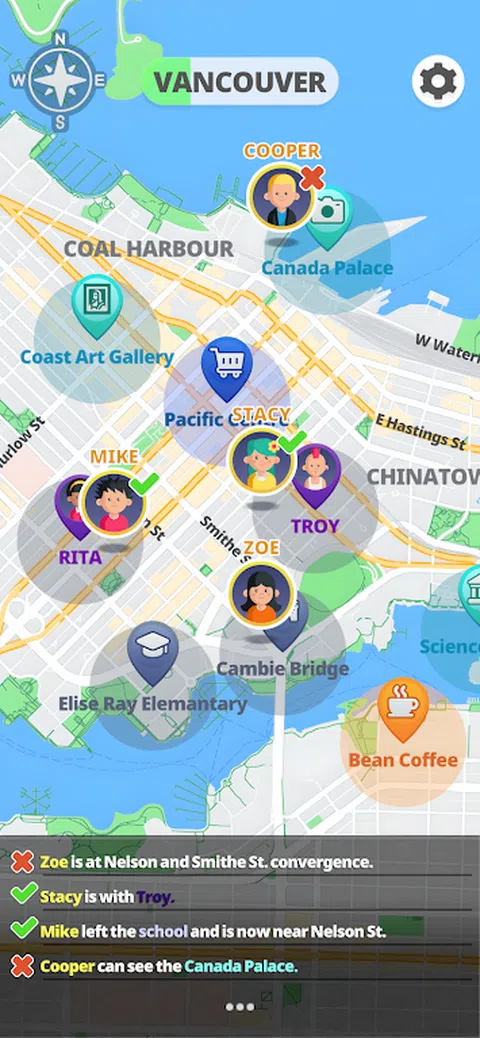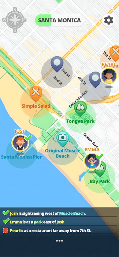 没有你,人们会迷失方向! 帮助他们到达正确的位置。 每个人都有一个说明,提示他们的位置。 根据描述放置它们,并在挑战大脑时解锁新城市