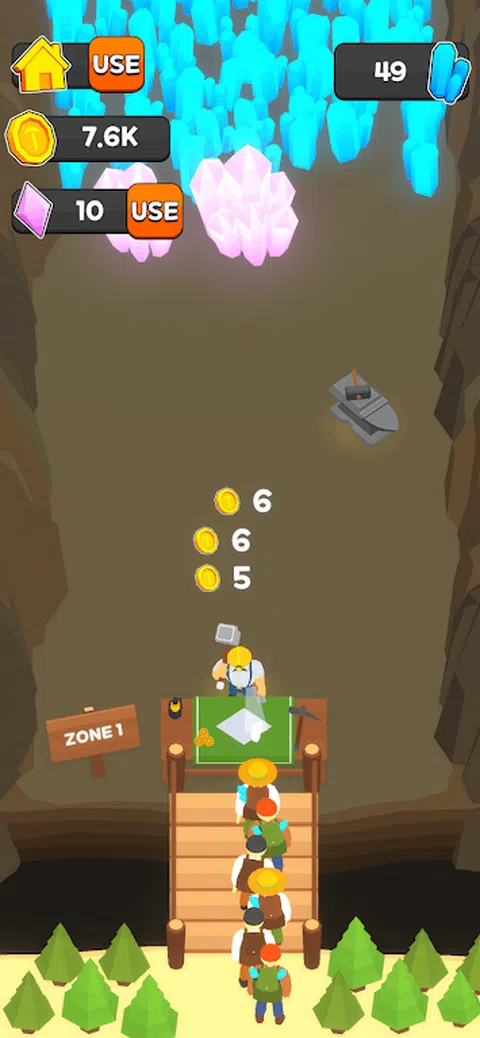 矿工正在矿井中开采! 这是非常简单的采矿游戏 :) 比你想象的更难