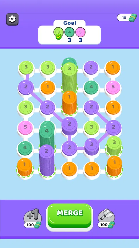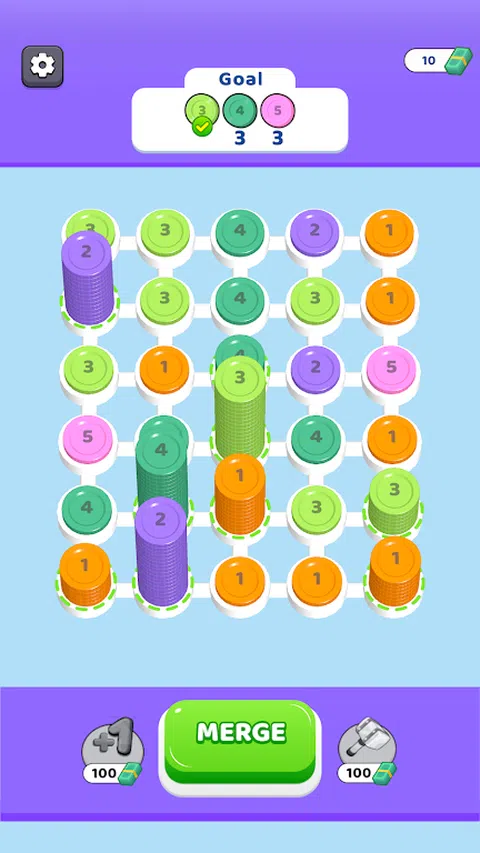 通过连接相似的硬币堆叠,并通过合并堆叠获得下一个硬币