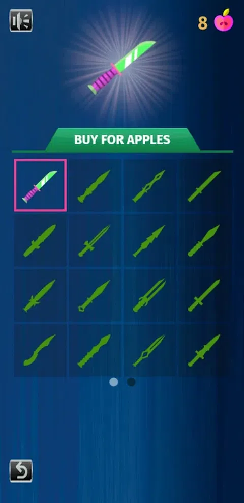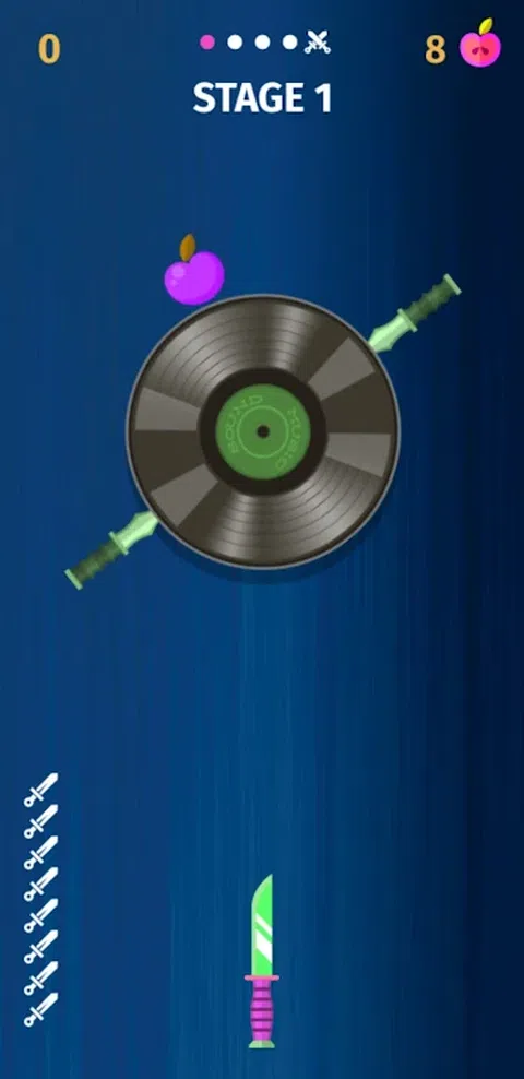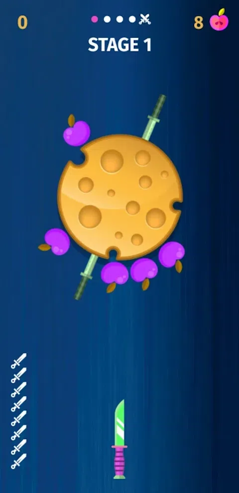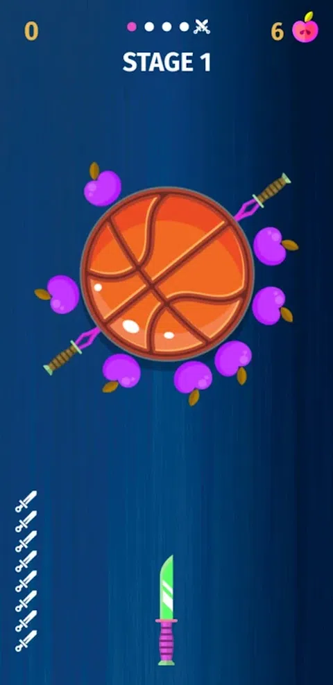 飞刀投掷游戏无需互联网即可运行 本场比赛概况: Master of Legend Pizza Knife Thrower Game是一款有趣的游戏,具有动作代码和技能,可以让你在旋转板上敲击你的刀并解锁新的特殊刀。你不能击中任何其他刀。只需将刀扔到圆圈上,然后倒出苹果。