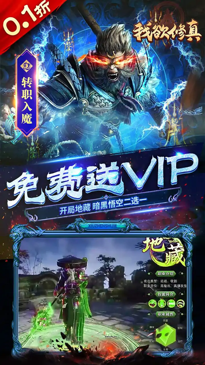 游戏内所有充值通通0.1折,原汁原味0.1版本,物价完全保持原价,原几千元神藏套装仅需几十元 《我欲修真》3D仙侠世界,游戏采用即时战斗模式。在游戏中,玩家扮演的修仙者在与天地妖兽争夺中自发形成势力,抵御天灾人祸,妖兽肆虐的域外之地,借用天地之力成就更多可能,可前往探索星图猎场,捕获星兽获取材料炼金,探索存在于虚空中得上古遗迹,寻得古仙遗留,开启新得修炼方式,通过完成任务、剧情探索、打败BOSS、挑战副本、日常活动等玩法获取各种材料和资源,用以提升装备、获取灵骑、收集仙宠,强力变身,成就更多可能,开辟新的战场。