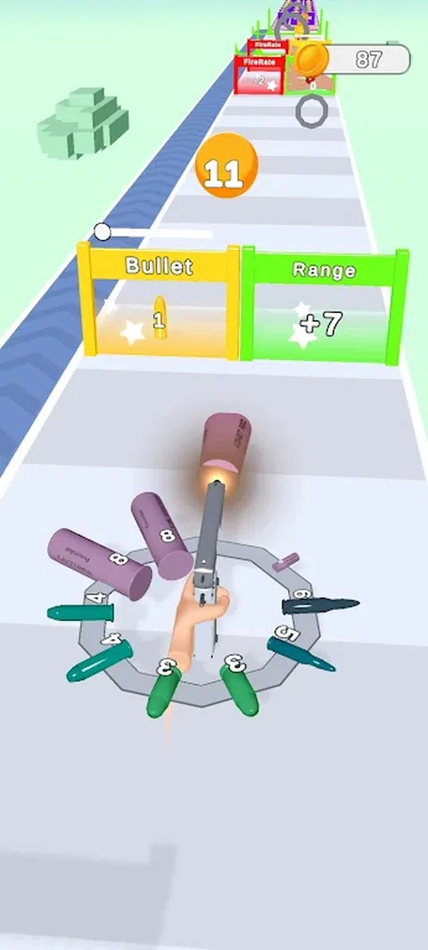 控制枪支,通过一系列大门,同时仔细选择正确的路径,以最大限度地提高火力