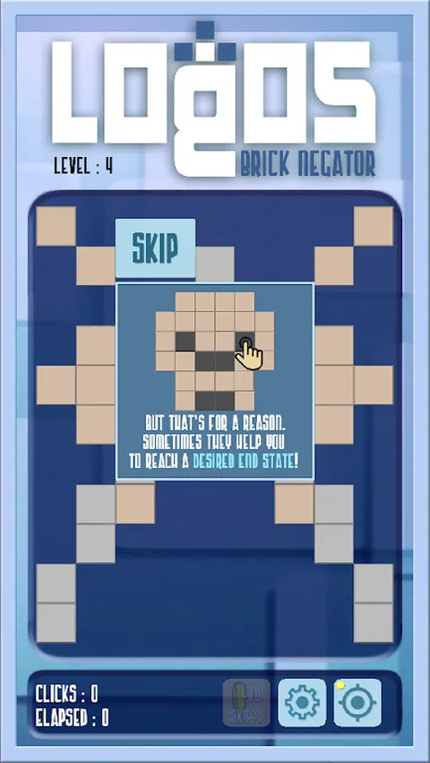 Logos 是一款益智游戏,使用简单的方块反转规则,导致战略性复杂的情况,需要使用大脑和逻辑的高级问题解决能力。 这是一种思维游戏。 单击一个方块将使其消失,同时将在其旁边放置更多的方块,除非有墙(或某些固定元素)。 玩法简单,难于解开谜题。 该应用程序包含两个级别包,每个包包含 15 个级别。基本包作为教程提供,可帮助提高您在此游戏世界中的技能。“修道院”包通过故事情节扩展了游戏,您的拼图解决会影响故事情节 提高水平。 玩家可以登录 Google Play 服务,以已完成关卡的总分加入全球高分列表。 当你解决一个关卡时,游戏还会奖励你的努力,为你提供 1 颗脑力增强丸(BBP)。这些可用于根据需要跳过级别,但在这种情况下,不会为该级别授予分数。分数的计算方法是,在最短的时间内使用尽可能少的点击次数来解决关卡。 带上它