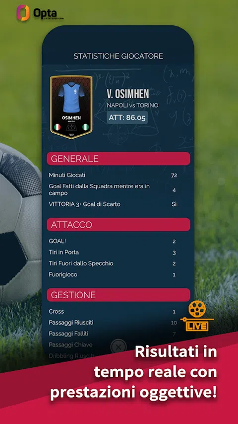 Fantalegends 是一款多比赛梦幻足球游戏,可提高您作为梦幻教练的技能,限制休息时间并增加挑战!你将能够踢意甲联赛和欧冠联赛! - 不再有成绩单! 球员获得的积分是通过专有算法计算的,该算法考虑了 50 多个参数,以全面提高他们在球场上的表现。 - 球场上的零点?不,谢谢! 有了 Fantalegends 的战略替补席,你几乎不可能在球场上零分。事实上,这 8 名替补球员将弥补 5 名首发球员出场时间较少的未上场时间,有效地像现实足球中那样进行换人。 - 多种游戏形式,乐趣倍增! Fantalegends 诞生时就有 3 种游戏模式:经典、选秀和单人模式,但还有其他模式正在酝酿中!很难感到无聊! - 每个事件都是独立的! 如果在浪漫的假期或与朋友聚会时忘记参加活动,您不必担心!从长远来看,Fantalegends 会奖励您的坚持,尝试成为 G.O.A.T. 永远不会太晚! - 真实角色! 14个模块,11个角色,也有不同的方位和多角色卡牌:与你排成一模一样的阵型的对手几乎是不可能的! - 当锦标赛停止时你也可以参加比赛! 没错,通过独特的复古轮抽模式,您可以随时玩、竞争并获得宝贵的资源