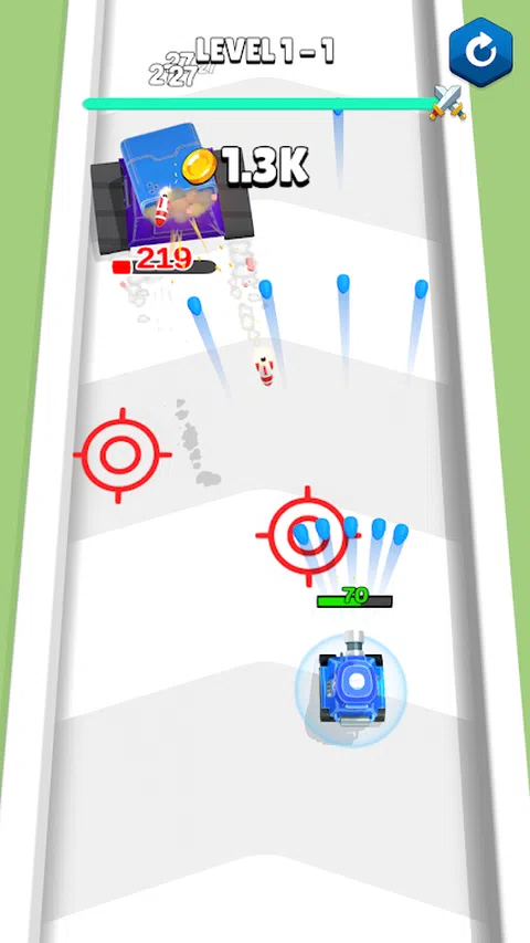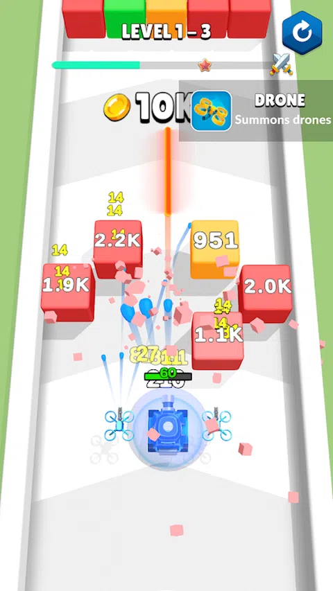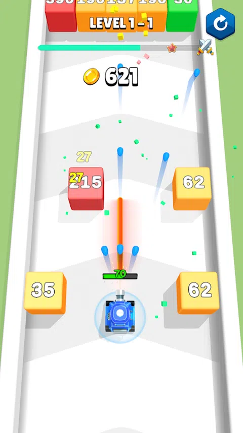 射击挡路的障碍物,用不同的能力泵油