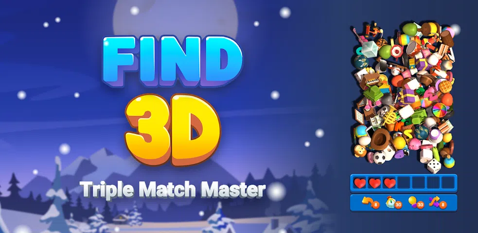 Find 3D - Triple Match Master 是一款简单而令人上瘾的益智游戏。 学习如何玩适合所有人的游戏非常容易。 怎么玩: • 点击三个相同的对象来收集它们。 • 不断分类和匹配对象,直到完成任务 * 当心!不要填满收集栏。 * 每个级别都有一个计时器,因此请快速移动并达到级别目标。 随时随地享受完全免费的 Find 3D - 三重匹配大师游戏。搜索地面上的 3D 物体,匹配它们,并挑战您的朋友! 立即下载并开始您的 3D 拼图冒险