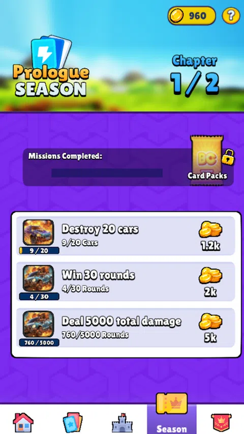 欢迎来到破坏德比冲突,终极移动游戏体验,让您在高辛烷值的汽车粉碎混乱中占据主导地位!这款休闲手机游戏完全是关于车辆混乱,您的任务很简单:生存并成为最后站立的汽车。 游戏玩法:作为玩家,你控制一辆强大的汽车,你将用它来撞击其他汽车。每次碰撞都会为您带来废料,您可以将其用于在主屏幕上创建令人惊叹的立体模型。立体模型完成后,您将为下一场史诗般的战斗解锁全新的竞技场环境。这些环境包括炎热的沙漠、冰冷的滑雪场、阳光明媚的热带海滩和繁华的城市停车场。 卡牌系统:每次战斗后,您将获得卡牌包。这些卡牌分为三种类型:车轮卡牌、车身卡牌和终极卡牌。车轮卡为您的汽车提供独特的美学外观,并提供微小的统计差异。车身卡还可以改变车辆的外观,同时提供小的统计调整。另一方面,终极卡牌可让您在蓄力条已满时释放毁灭性的力量,例如球和链条、机枪、炸弹或尖刺。您可以升级卡以改善其统计数据,为车身添加改装件,例如扰流板和防滚架,或增加终极技能的伤害输出。 排行榜和挑战:在排行榜上与来自世界各地的玩家竞争,证明自己在竞技场中的统治地位。完成挑战以赚取可用于卡牌包的游戏内货币,增强您的武器库以进行更多破坏。 战斗通行证:随着游戏的进行,潜入战斗通行证以解锁独家奖励。在每个等级中,您都将获得新的化妆品、卡牌和其他令人兴奋的内容,以保持肾上腺素激增。 在线多人游戏:当您准备好释放混乱时,从主屏幕选择“战斗”,您将在线与多个对手匹配。在令人振奋的多人对决中测试您的技能、策略和定制卡牌。 您准备好征服拆解德比世界了吗?现在是时候加速您的引擎,粉碎您的对手,并建立终极的破坏机器舰队了。“破坏德比”提供无尽的乐趣、策略和爆炸性动作,使其成为肾上腺素和寻求刺激挑战的游戏玩家的完美选择。立即下载游戏,为车辆统治铺平道路
