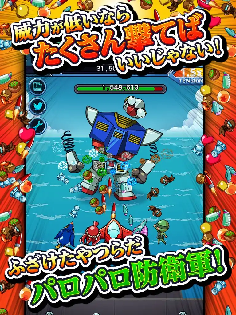 站起来的英雄们,他们的名字叫帕洛帕洛国防军! ■故事--- 20XX年威胁威胁到了美丽的蓝色地球。神秘的生物UMO已经控制了海洋,海洋占70%。即使他们试图击退他们,他们还是被消灭了。在鲁ck之中,鲁ck挂了一个策略,有人站了起来! “如果一枪不能做到,就可以得到100枪。如果一亿枪不能做到,那就发射子弹!发射子弹!”是的,我们的“帕洛帕罗国防军”! ==================================================== ======■游戏特色・让我们继续在UMO射击子弹!一种损害可能很小,但如果损害数万亿,它将减弱!・重拾大海,就可以加入其他英雄!与新英雄一起工作,并发射更多子弹!让我们增加弹幕吧!・使用针对UMO的特殊技术来刺破球壳!致命技术对具有再生能力的UMO有效!让我们越来越多地使用它!・作为英雄队长,指挥所有人!在战场上一起战斗可以提高英雄的士气!它将对您的力量产生重大影响!