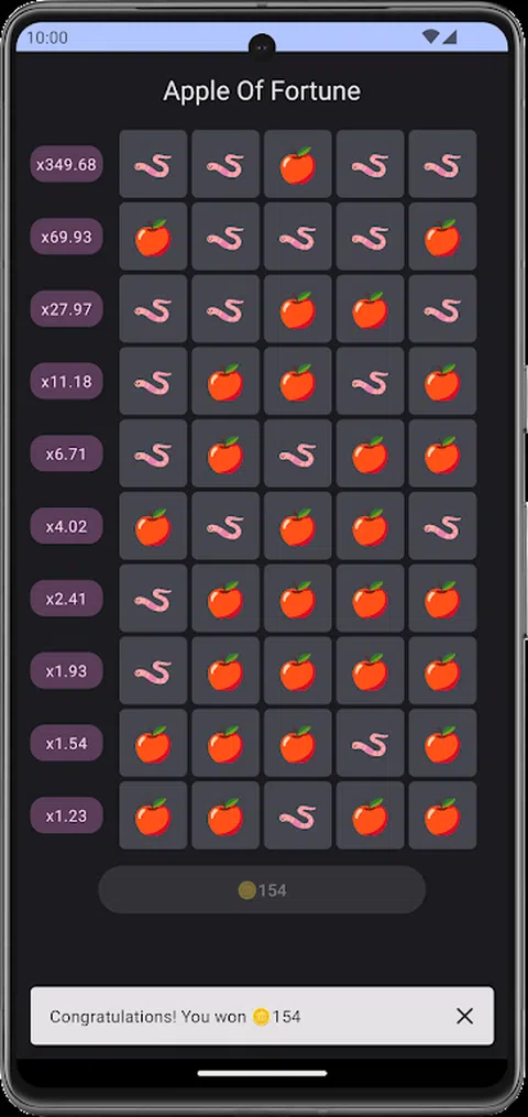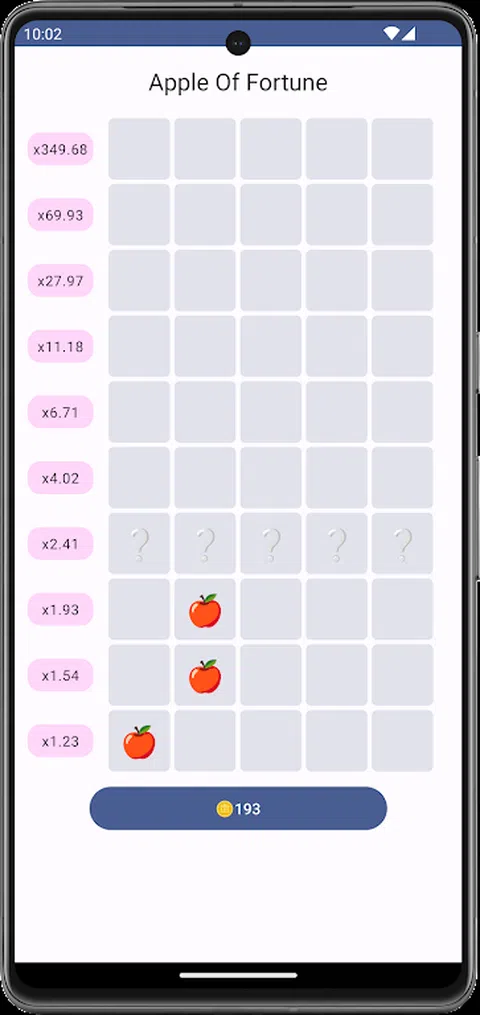 隆重推出“财富苹果”,Google Play 上的终极技能测试!在这款充满悬念的手机游戏中,您的挑战是证明自己的智慧。您将面对 10 行神秘细胞,每行包含 5 种可能性。在上升行时明智地选择,因为你走得越高,潜在的奖励就越大。但是谨慎是关键 - 一个烂苹果意味着你会输掉全部赌注。这是一个智力、策略和纯粹选择的游戏。你能超越挑战并带着好苹果走开吗?立即下载,看看“财富苹果”中的财富是否偏爱大胆的人