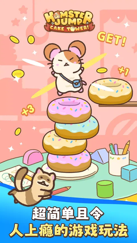 跳入《仓鼠跳跃:蛋糕塔》的迷人世界,体验甜蜜冒险之旅,在这款游戏中,你的操作是糖果征服的关键! 在这款免费的移动游戏中,你的任务是引导一只可爱的仓鼠穿过蛋糕层的迷宫,一路点击到达高处。这不仅仅是测试你能爬多高——这是技能、精准和时机的展示。每次控制跳跃,你都会收集硬币并获取增强游戏体验的能量提升,同时享受一个像你攀爬的甜品一样甜蜜的社区的陪伴。 你掌握的控制简单而深刻:一次点击决定了你的仓鼠跳跃的高度和方向。随着游戏的进展,你收集的仓鼠角色会越来越多,每一个都有特殊的能力来帮助你上升。随着你攀登《仓鼠跳跃:蛋糕塔》的高度,你会发现挑战越来越大,促使你精炼策略并从社区寻求技巧来优化你的跳跃。