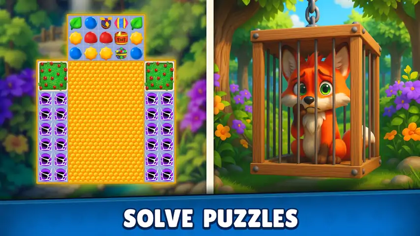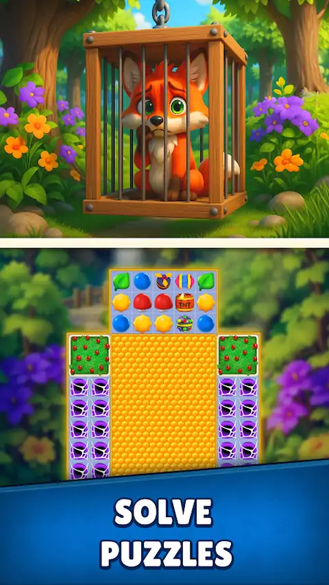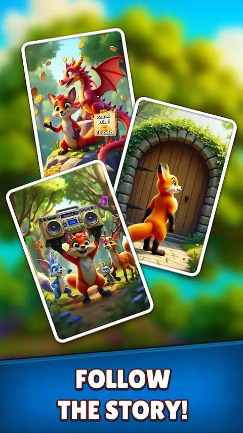 ? 与聪明的狐狸芬恩一起踏上异想天开的旅程,他将着手在 Foxy Match 中恢复失落已久的森林神庙!? ? 故事概述: 在一个神秘森林的中心,芬恩的任务很明确:复兴古老的森林神庙,以拯救生病的林地。这座寺庙曾经是自然魔法的守护者,现在已成为废墟,导致森林枯萎。加入芬恩,深入森林,遇到独特的生物,揭开秘密,收集强大的文物。 ?主要特点: 三消拼图乐趣 - 通过交换和匹配森林主题珠宝和符号来解决迷人的拼图。创建强大的连击和清晰的关卡以取得进步。 助推器和道具 - 发现有趣的助推器和道具,帮助您克服具有挑战性的障碍。用你的智慧和策略取胜! 独特的关卡 - 探索基于四个元素守护者—土、水、火和气—的主题关卡。每个守护者都会带来新的挑战,并解锁森林的一部分魔法。 易玩 - 简单直观的游戏机制确保“魔法森林三消”适合所有年龄段和技能水平的玩家。 无缝游戏- 没有侵入式广告-您可以在游戏中不受烦人的打扰