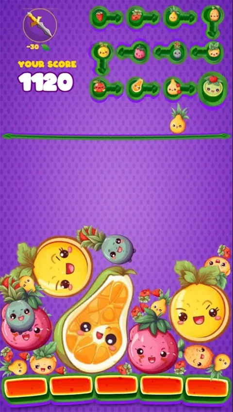 ?说明: 水果合并是一种西瓜游戏,以前称为 Suika Game,是 2048 Drop Game 的一种。 ?怎么玩: 点击屏幕以放下水果。两个相同的水果将合并在一起并变成更大的水果并获得分数。尽量匹配相同的水果。 当没有空间放置更多水果时,您可以购买刀子以掉落最大的水果以将其摧毁。 巧妙安排,实现合并链