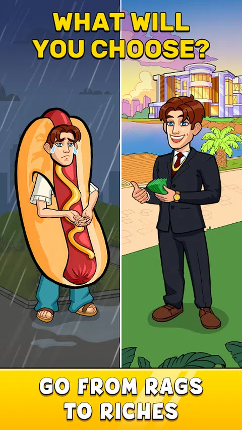 实现您的远大抱负,在赚钱模拟器中从衣衫褴褛地崛起!在 Money Boss 游戏中开始你的冒险 - 赚大钱,经营自己的企业,成为亿万富翁大亨! 开始丰富的旅程 从零开始你的成功故事,在这个生活模拟器中达到亿万富翁的地位。做出选择,采用策略,将自己从一无所有提升到获得想要的一切。 选择成功之路 要致富,您需要决定自己的教育和职业。你可以成为任何你想要的人:银行家、主播、建筑师、商人,甚至是星球殖民者。商业游戏为您提供无尽的赚钱机会,因此成为一个闲散的大亨并不难! 购买昂贵的东西 通过购买花哨的东西来升级你的模拟市民的状态:汽车、衣服和房子。在 Money Boss 购物不仅仅是炫耀您的财富 - 这是开启新的令人兴奋的职业和业务的战略举措。 打造梦想生活 除了工作之外,您的模拟市民还可以在这款闲置的赚钱冒险游戏中建立有意义的关系并创建一个充满爱的家庭。选择您完美的日期和进度关系。你甚至可以结婚,一起养宠物和孩子。 管理健康和幸福 维持你的模拟市民的需求,以维持你的角色成为亿万富翁大亨的追求。这是一个逼真的生活模拟器,因此,如果您忽视了模拟市民的需求,则可能不得不重新开始冒险。 “金钱老板”模拟器的特点 - 从头开始,为成功而战; - 做出明智的选择并面对后果; - 建立您的职业生涯或开展业务; - 致富并成为亿万富翁; - 购买全新的衣服、汽车和房屋; - 建立浪漫关系并组建家庭; - 照顾您的健康和幸福; - 享受赚钱游戏的无尽机会! 让自己沉浸在金钱老板的刺激任务中,从衣衫褴褛到富有