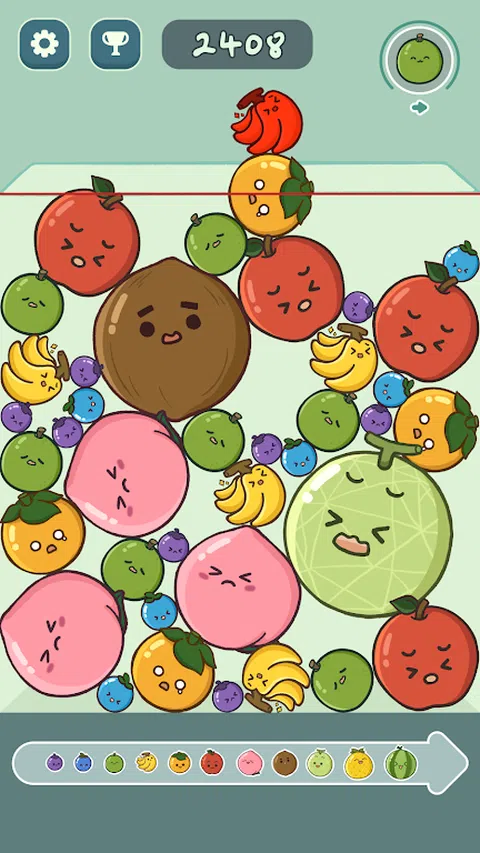 合并西瓜 - 水果合并是一款热门的减压水果匹配游戏,当相同的水果碰撞时,它们会变成一个全新的水果。合并一个大西瓜,为您带来轻松愉快的游戏体验。? ?怎么玩:? - 轻松点击屏幕来获取水果 - 合并相同的水果,创造一个更大的新水果 - 1 个助推器可在您需要时为您提供帮助 - 合并所有水果以获得大西瓜和高分 入门非常简单,但要获得西瓜却很难。你能创造一个西瓜吗?将两个小水果组合成一个大水果,看看你是否能生产出一个又大又多汁的西瓜
