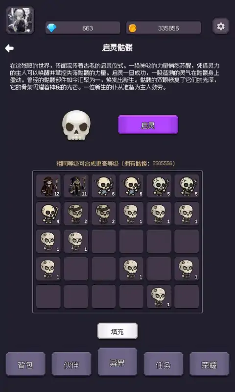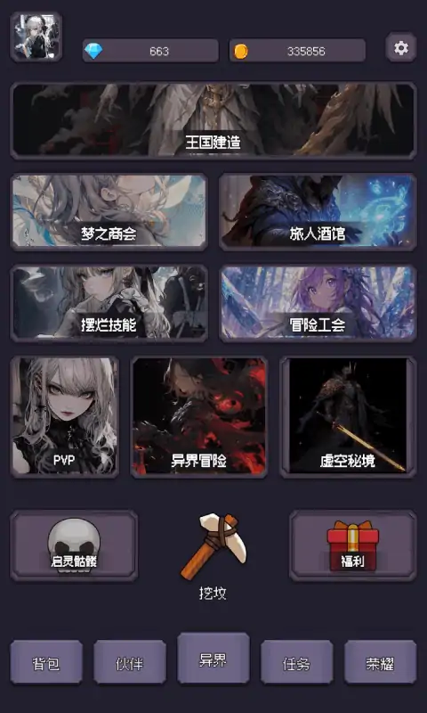我是一名勤勤恳恳的打工人,每天加班到深夜就是我的日常,我很开心,每月大几千的工资,完全“花不完”。今天不知道怎么了,右眼皮跳了一天了。 终于熬到了下班的点,我刚起身准备去搭最后一班公交车。突然,心脏一阵绞痛,“woc,我不会要猝死了吧!!!,不要啊,我不想我年少英俊的躯体……噢不,灵魂,就此陨落,我还是单身呢,这个月的工资还没花完呢……!我的浏览器记录还没清呢~,我手机里……“,然后,我失去了意识。 当我再次醒来,周围的一切好像变得不太一样,我很确定,这不是我所在的世界。我居然在一片墓地旁醒来。我手里莫名其妙地握着一把小铲……,不会是,不会是要让我挖坟吧……我看了看墓碑,上面写着启灵骷髅,好奇怪的文字,难道这下面有什么宝贝? 费了好一会,终于挖好了,一具躺着的完整白色骷髅出现在我的面前。“这也没什么特别的呀……”,启灵是什么意思,刚说出这个词,突然白色骷髅居然站了起来,然后臣服在我面前,“感谢主人为我启灵,我愿追随主人鞍前马后“…… ”啊啊啊~,什么鬼啊,这也太离谱了“…… 【异界摆烂王之国是一个可肝可佛的RPG冒险挂机游戏,拥有丰富的玩法。挖坟、启灵、挖矿、种植、伐木、钓鱼、烹饪、战斗等等,游戏拥有上百种敌人。目前游戏规划了8个职业,灵术师、刀客、元素术士、奥术学者、圣骑士、游侠、唤灵师、影子刺客。每个职业都拥有专属的装备和技能。另外,战斗系统可携带足够的食物,自动补血,连续战斗。】 目前游戏还在开发中,敬请期待~ 【玩家交流群】873927922