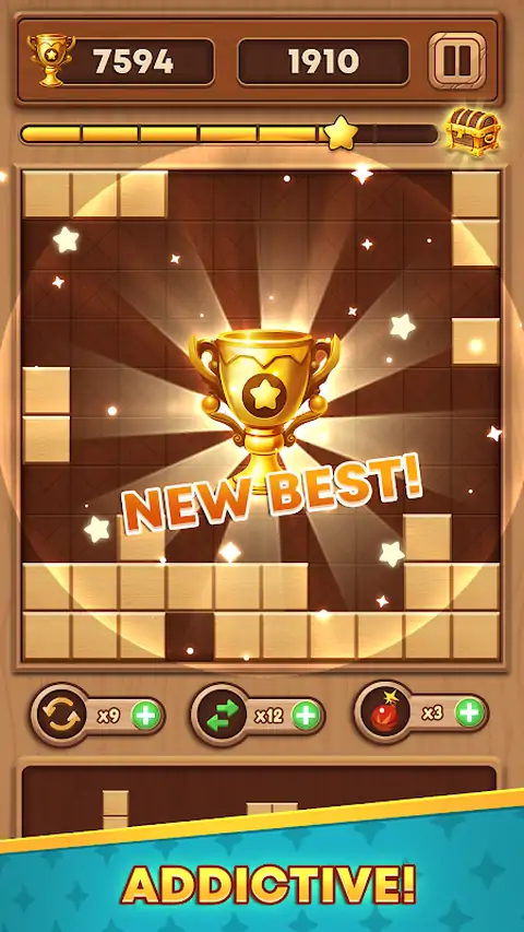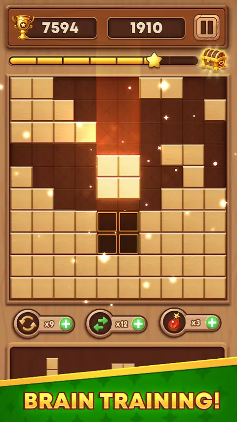 简单易玩但具有挑战性的益智游戏!训练您的大脑,提高您的智商! 木块拼图是数独和积木游戏的完美结合。Wood Block Puzzle 也是一种具有经典木质皮肤的俄罗斯方块游戏。粉碎的木块越多,您将获得更多的分数。试试吧,你会喜欢这个棋盘游戏! 匹配方块以完成线条和立方体以将其移除。保持面板清洁,在积木拼图中击败您的高分!挑战模式类似于拼图。它有助于扩展您的思维,并将其提升到一个新的高水平! 游戏中有两个有趣的游戏设计。当您可以在面板上显示任何方块时,不要忘记使用硬币来旋转方块或将一个方块拖动到名为 Holder 的区域以供以后使用。充分利用硬币和持有人可以帮助您的大脑保持灵活性。 如何成为木块拼图大师? 1.将木块拖放到 9x9 网格板上。 2. 通过创建完整的行和列来消除方块。 3. 每次移动和消除方块的每一行或每一列都有奖励分数。 4. 当你被卡住时,尝试使用旋转道具或将方块移到支架中。 5. 如果棋盘上没有指定方块的空间,则游戏将结束。 木块拼图特点: 1.身临其境的游戏,没有时间限制。 2. 在任何地方玩游戏,例如在咖啡馆或队列中。 3.自动保存游戏进度供您下次继续。 4.没有时间限制,按自己的节奏玩积木拼图! 5.许多特殊形状的积木使游戏充满挑战。 6. 持有者可以恢复一个无法显示在面板上的方块。 7.旋转道具可以改变方块的方向,让你适应面板。 8. 木质风格的图形将您带入大自然。 9.让清脆的声音效果消遣。 木块拼图是适合所有年龄段的经典木拼图游戏。与您的朋友分享木块拼图,一起度过休闲时光,并彼此亲近