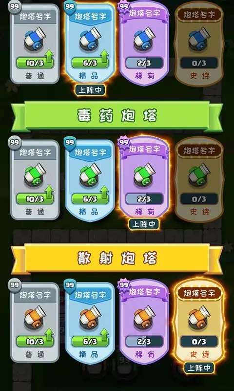《合成炮塔》是一组塔防类小游戏,玩家需要放置小小的怪物们逃出地图。玩家需要速速提升自己炮塔的为例,只需将相同的炮塔合成在一起就可以升级,排除掉反锁的操作。并且炮塔还可以收集碎片,提升炮塔的阶级,大幅提升威力。