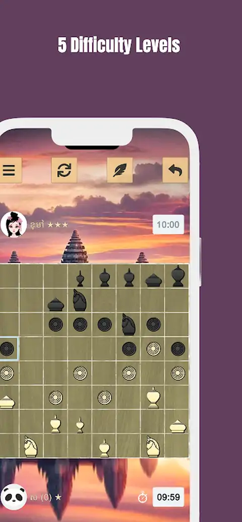 潜入 Ouk Chaktrang 的迷人世界,俗称柬埔寨国际象棋,这是一种深深植根于东南亚古老传统的游戏。Ouk Chaktrang 起源于与可追溯到 6 世纪的印度 chaturanga 相同的血统,证明了战略棋盘游戏的持久吸引力,并与全球现代国际象棋现象有着历史联系。在高棉语中,它通常也被称为 Ouk(អុក)。 在您的数字设备上让这款古老的游戏栩栩如生。Ouk Chaktrang 非常适合与家人共度轻松的夜晚,也非常适合与 AI 对手进行具有挑战性的单人比赛,提供策略和文化遗产的独特融合。准备好测试您的技能了吗?面对我们老练的人工智能对手 - 每一次胜利都需要狡猾的战术和战略远见。 通过与你击败的每个人工智能对手积累经验值,逐步晋级。对手越强硬,奖励就越大。 主要特点: 5 个人工智能难度级别:迎合初学者和专家的需求。 交互式棋盘编辑器:自定义您的游戏体验。 个性化选项:从各种图板、作品、头像和主题中进行选择。 全球排行榜:与世界各地的玩家竞争,展示你的掌握程度。 分享您的游戏:重温并与朋友分享您最激动人心的比赛。 保存和恢复功能:您的进度始终安全。 定时挑战:对于那些在压力下茁壮成长的人,与时间赛跑! 今天就让自己沉浸在 Ouk Chaktrang 的迷人世界中,踏上独特的柬埔寨国际象棋冒险之旅
