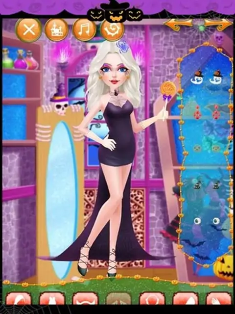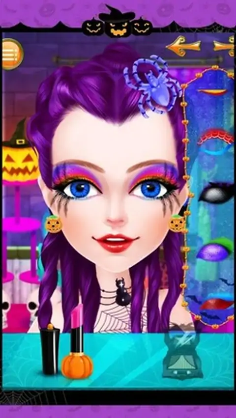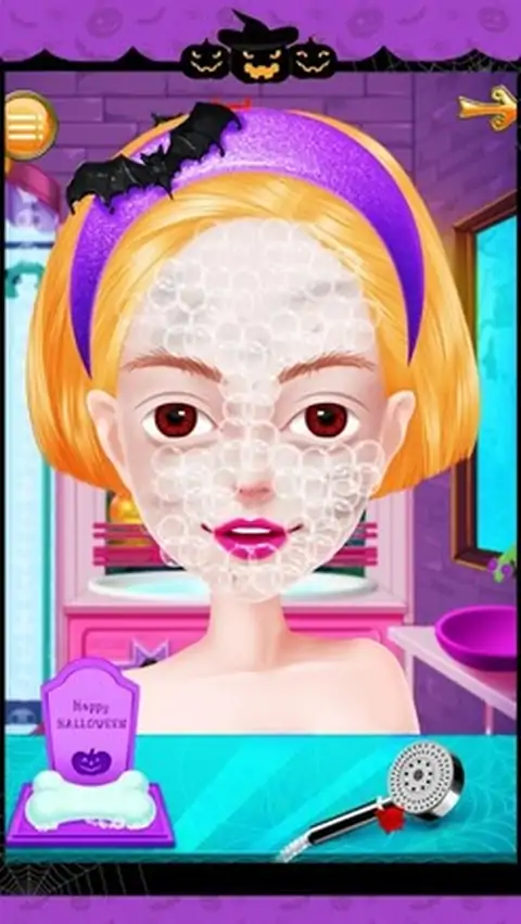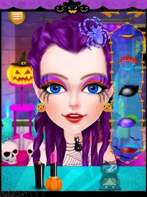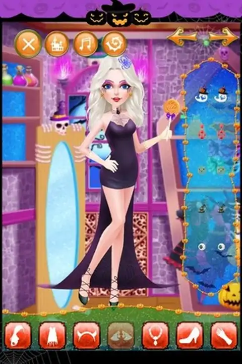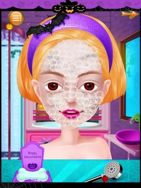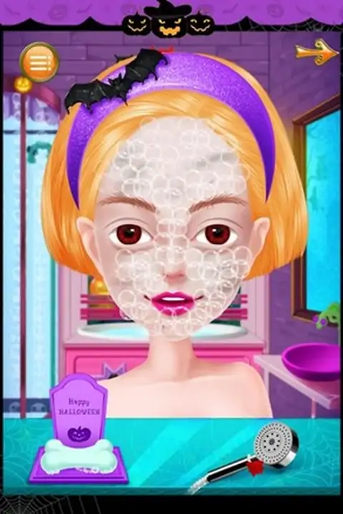 Halloween is usually celebrated among family, friends, even co-workers in many different ways, but the most popular tradition is holding a large costume party at October 31’s night!All sorts of strange clothes, unique make-up, colorful masks, dress up as spooks, ghosts, walking skeletons which exist in the spiritual and physical world, or dress up as witches and wizards in a party where has been filled with bats, black cats and 各种奇怪的衣服,独特的化妆,多彩的面具,对打扮成间谍,鬼,走在精神和物质世界中存在的骨架,或打扮成巫师的派对,已经充满了蝙蝠,黑色猫和蜘蛛。在这个游戏中,首先,你可以做一个水疗中心的小魔女,帮助她放松。然后,你可以把她的妆容。选择你最喜欢的妆容图片。最后,帮她穿不同风格的衣服和饰物的表演。开始舒缓水疗,以确保万圣节女孩的头发和皮肤都是完美无瑕已经露面的化妆舞会。接下来,帮她选择肤色,发型,眼睛的颜色,并把上妆,在这之后,我们有一个惊喜的礼物给你-----你可以自己设计漂亮的面具的女孩!然后,协助她选择的衣服,袜子,鞋子,匹配万圣节配件(包括项链,耳环,手镯和头饰)独特的西装。最后,你也可以选择一个特殊的道具(如各种魔术棒等)在她的手。毕竟这过程中,她将出现在最大的化妆舞会,让我们跟着她,看看它是多么惊人!来到美容院。啊,多么肮脏的脸!先清洁脸部。用肥皂洗净脸部,直到泡沫覆盖全脸,然后冲洗面部。现在的脸色瞬间变得干净。接下来,敷面膜,去除粉刺,涂抹眼霜,并去除眉小睡。哇,原来是小魔女是如此的美丽!好了,现在让我们来到了化妆间。第一次穿好看的发型。成熟的或中性头发,你喜欢?由你决定!戴发后,抹口红,美容隐形眼镜,眼影,眼线和假睫毛。最后,运用可爱的腮红。哇,多么漂亮,她是!她终于可以现在穿的衣服。来到更衣室。衣服,帽子和饰物在这里是如此美丽。无论如何,试戴一个接一个。现在,戴口罩,并采取魔术贴显示!要小心,不要被飘出牛鬼蛇神“恶作剧欢笑所吓倒。