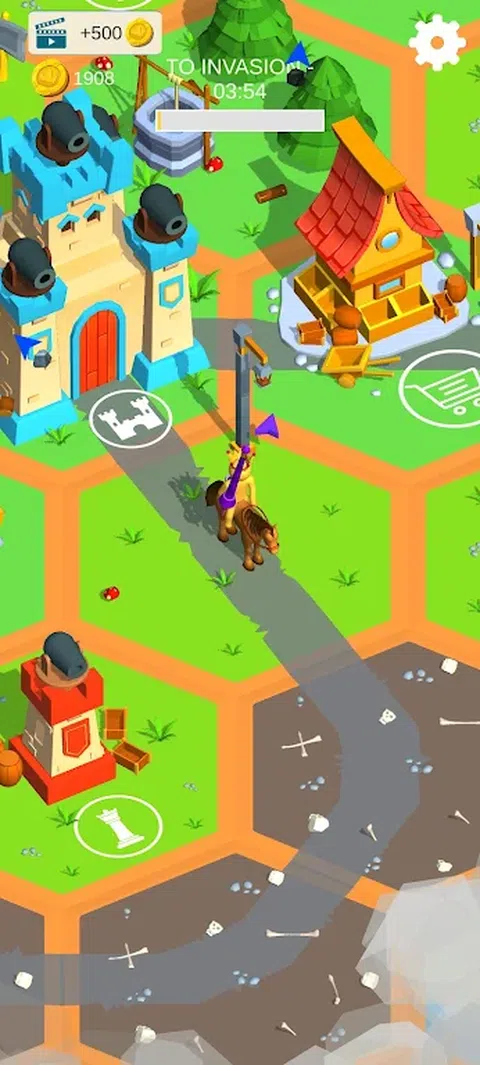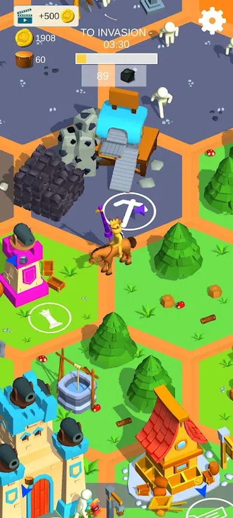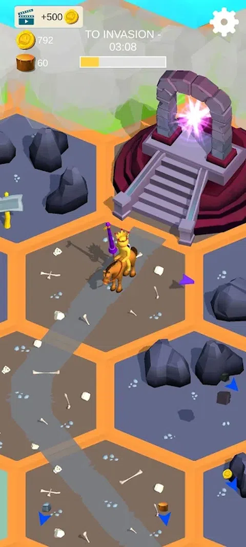 像真正的国王一样保护这片土地,抵抗每一次怪物入侵。 • 您只有一分钟的时间来击败每一波怪物。 •收集所有矿物和木材,将其出售并赚更多的钱。 • 改进您创建的每个结构,安全塔,城堡,一切