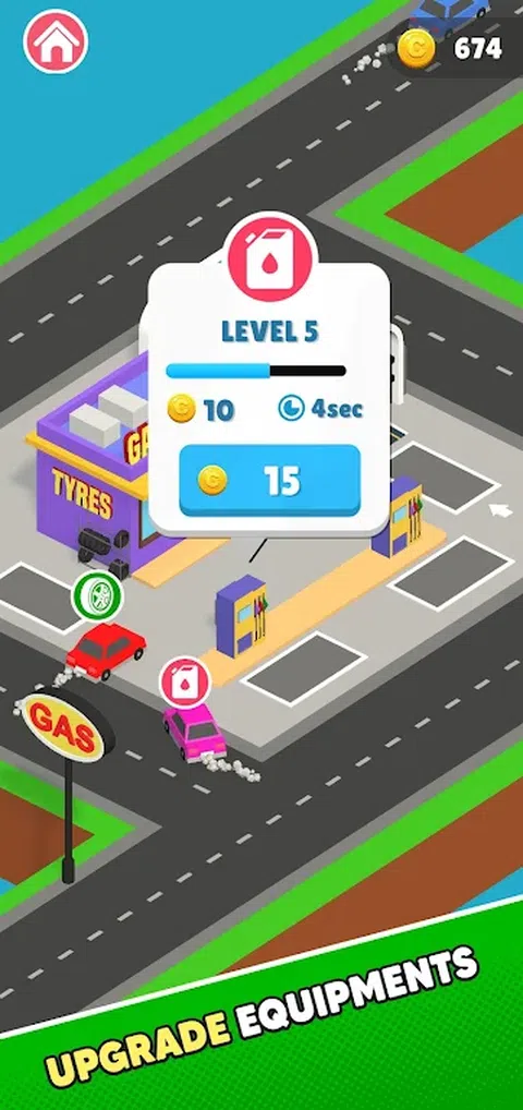 清除汽车并保持交通畅通。 一路上建立一个加油站帝国并赚取 $