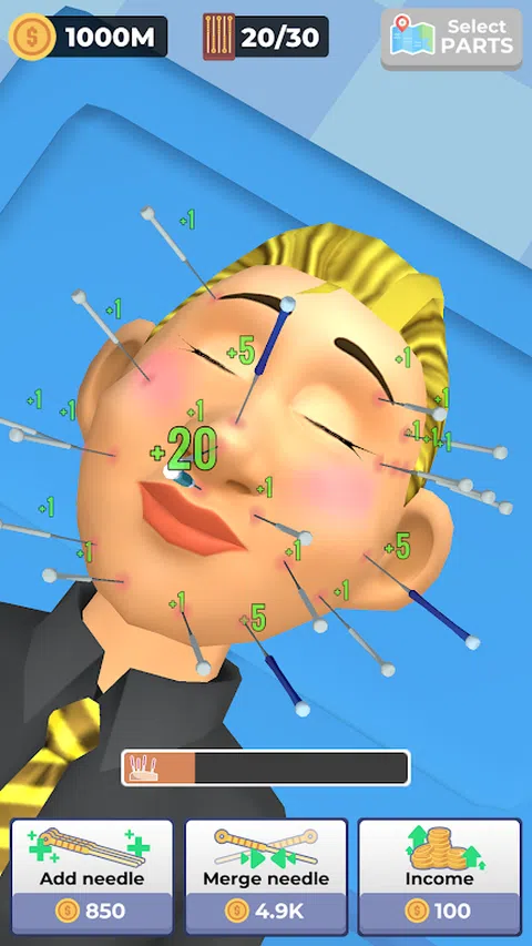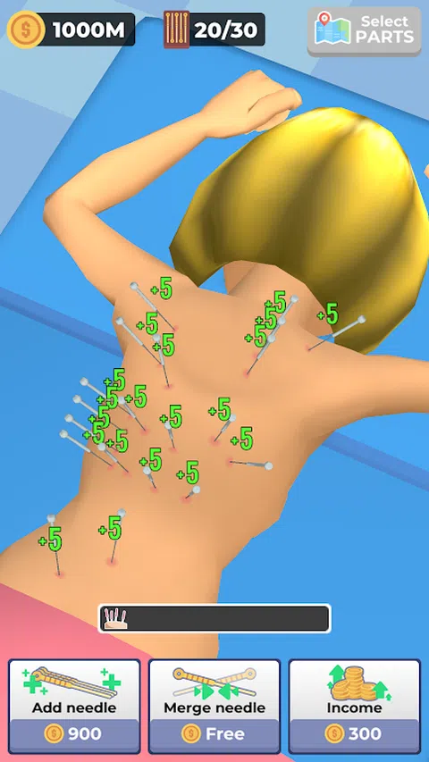 欢迎来到 Needle Master,这是一款以针灸艺术为中心的终极休闲闲置游戏!走进病人的诊所,作为玩家,点击按钮并添加针头是你的工作。看着一只手出现,将针头轻轻插入患者体内。一旦进入,它会随着时间的推移产生利润。 但这还不是全部!合并三个相同的针以创建更高级别的针并增加您的收入。随着您的进步,奖励会增加,诊所也会蓬勃发展。无论是头针还是背针,您都有治愈和繁荣的力量! 沉浸在这种轻松而令人上瘾的游戏体验中。成为终极针灸大师,见证针灸的神奇在您眼前展现