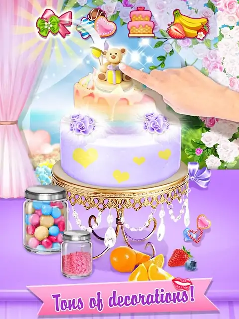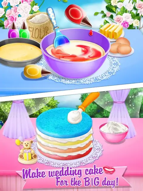 今天是大日子,将是充满乐趣的一天!作为婚礼甜点厨师,您的任务是帮助超级可爱的新娘用美味的食物和完美的婚礼蛋糕举办一场梦幻般的婚礼!嗯,您有一些创意吗?是的,彩虹蛋糕最适合度过最美好的一天,让彩虹蛋糕从头开始。在碗里加入所有成分:糖,水,面粉,鸡蛋,香草精等,将所有成分混合在一起,选择任意多的食用色素加入混合面糊中。您可以一起制作很多颜色。太好了,然后烤蛋糕。确保没问题。用很多浇头,奶油,糖果,水果,软糖等装饰彩虹蛋糕。这将是惊人的,并且最受欢迎的美食。来吧,您是超级厨师。让我们现在开始