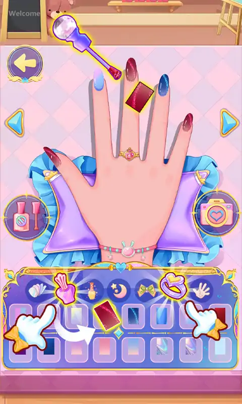 《梦幻冰雪公主变装女王》是一款专为喜欢换装、美甲、化妆、服装设计和旅行的女孩们打造的应用。 你将扮演一位可爱的冰雪公主莉莉,离开自己的王国,和你的魔法猫凯特一起踏上一段奇妙的成年旅行,探索不同的国家和风景,自由搭配各种服饰、饰品、发型和妆容,自己设计服装和指甲,展现时尚品味和创意才能 应用特色: 自由换装:随心所欲地装扮,打造属于自己的独特风格。你可以选择上衣、下装、连衣裙、外套、鞋袜、套装等多种服装搭配,多种背景和道具,让搭配更加生动有趣。 服装设计:选择不同的服装版型,更换服装的颜色和花纹,设计服装上的装饰和印花。 美甲:享受美甲的乐趣,选择不同的指甲形状、颜色、闪光涂层、指甲贴纸、装饰品和首饰,打造出精致的美甲艺术。 化妆:尝试各种妆容,选择不同的眉毛、睫毛、瞳孔、眼影、口红和腮红,让你的脸部更加美丽动人。 旅行:参与到一段精彩的旅行故事中,跟随莉莉和凯特一起探索不同的景点和国度,根据要求进行换装和化妆,邂逅各种有趣的人物和事件,赢得奖励。 惊喜蛋:抽取惊喜蛋,获得各种稀有套装。每个套装都有自己的故事和风格,让你惊喜不断。