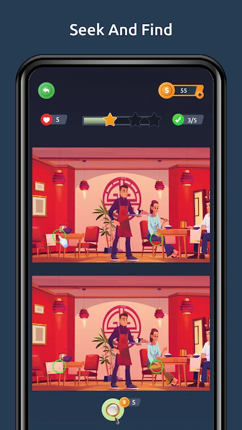 Find It Fast 是一款挑战大脑的游戏,可鼓励您发现通常可能会错过的差异?。“快速查找”的与众不同之处在于,它能够提高您的思维能力,同时在您需要休息时提供短暂的逃避。这款游戏提供更多模式、更多挑战和更多乐趣,与您玩过的任何其他找不同游戏不同。? 您准备好玩“快速查找”了吗? 拿起放大镜,准备应对具有挑战性、有趣且免费的益智游戏!? 目标很简单:?检查图片,?识别差异,然后点击您找到的每个图片 - 在时间用完之前发现差异。快速找到它的每个级别!展示了两张看起来几乎相同的迷人照片。然而,它们之间有几个微妙的区别。您的任务是尽快检测它们。随意享受很容易,但很难掌握!快速查找是成年人玩的终极找差异游戏!? 隐藏对象游戏非常适合测试您的发现差异和解谜能力。您需要做的就是挖掘差异,您 ? 锻炼您的大脑!? 如果您觉得我们的“快速查找”游戏很有趣,请与您的朋友和家人分享????。对于我们的忠实粉丝,请在留下评论时告知我们您喜欢的差异模式!我们会阅读每条找差异游戏的评论,并真诚地致力于使这款游戏成为您体验过的最佳找差异游戏! 玩最流行的?新发现差异游戏 不要等待,立即下载 Find It Fast