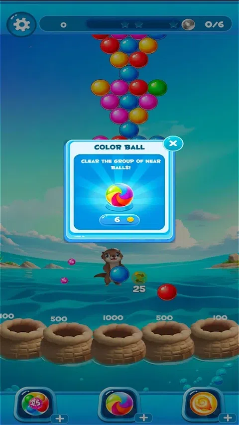 这是一款泡泡射击游戏。游戏中你需要操纵海獭来完成水球的射击。游戏玩法简单,经典的泡泡射击玩法:只要将两个以上相同颜色的球射下来就可以获得积分,所有的球掉下来或者达到分数要求就可以通过。如果你遇到困难的关卡,你也可以使用道具来协助通关。祝你玩得开心,成为水獭,射击各种各样的球