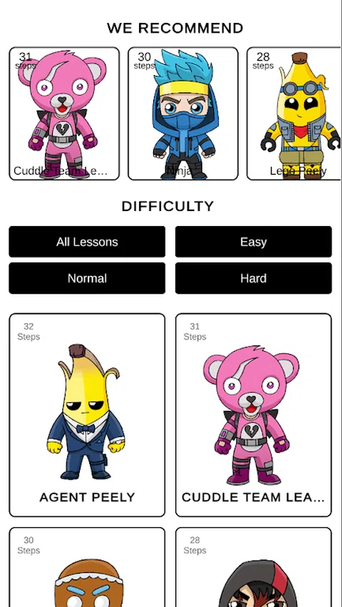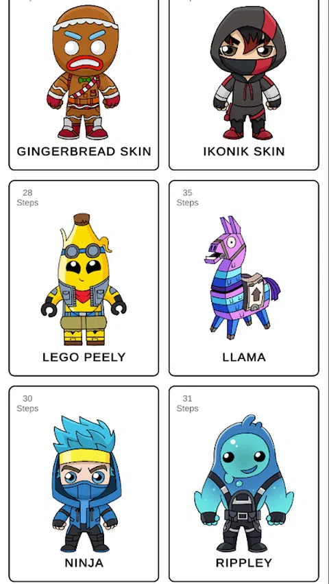 How to Draw fortnira - 该应用程序非常适合流行的 fortnira 游戏的粉丝,他们想要学习如何恢复自己喜欢的角色。 如何绘制 fortnira STEP By STEP 包含有关如何绘制流行的 fortnira 游戏角色的详细课程,例如特工皮利,拥抱团队负责人,姜饼皮肤,Ikonik 皮肤,美洲驼,忍者,里普利等。得益于简单的说明和清晰的插图,您将快速掌握创建自己的令人惊叹的英雄插图所需的技术。 在教学应用程序中,如何绘制 fortnira 是一个非常简单易懂的管理,您将毫无问题地应对它。 在应用程序中做什么?首先,选择要绘制的角色。在此之前,不要忘记拿一张纸、一支铅笔和一次清洗。选择英雄后,继续上课!重复本课程中给出的所有步骤,您将轻松地从 Fortnira 宇宙中绘制所选角色。相信我,您不需要经验和绘画技巧。一切都会好起来的!按照如何逐步绘制 fortnira 应用程序的课程进行操作,结果很快就会出现! 通过使用“如何绘制 fortnira”应用程序进行绘画,您不仅可以放松,还可以提高自己的技能。抽奖!感觉像个艺术家! 我们希望您会喜欢《如何逐步绘制 fortnira》,您将玩得愉快