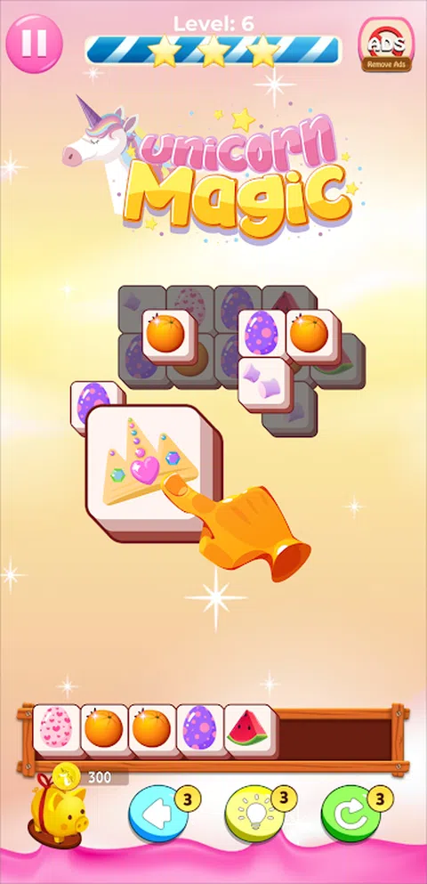 “独角兽魔法:图块匹配游戏”是一款以异想天开的独角兽主题为背景的迷人新匹配益智游戏。踏上刺激而令人上瘾的匹配冒险,让自己沉浸在独角兽的神奇世界中 - 全部免费!您的任务简单而令人愉快:一次匹配三个相同的图块,将其粉碎并进入下一个级别。随着多个级别的复杂性不断增加,游戏提供了令人愉快的挑战,将吸引您并娱乐您。 如何玩: * 点击独角兽主题图块并将它们移动到下面的插槽。在插槽中形成三个匹配的图块组将使它们消失。 * 成功移除关卡中的所有独角兽图块以取得胜利。但是,请注意,如果插槽总共填满 7 个图块,则等待失败。 * 每个级别都有自己的时间限制,增加了额外的刺激和策略层次。 游戏特色: - 超过 20 种可爱的独角兽主题图块图案,包括水果?和糖果?以及其他令人愉快的惊喜。每个图块板都经过独特制作,每次玩时都能提供新鲜而神奇的体验! - 探索适合所有年龄段的 1000 多种精心设计的布局! - 利用 3 种强大的助推器-扩展凹槽?、随机播放和撤消?-增强您的游戏体验。解锁后享受无限助推器! - 在您方便的时候离线玩。 - 参与多人游戏模式,与朋友和家人分享解谜的乐趣。 当您完成每个级别时,陶醉于金币的奖励,为您的独角兽主题拼图之旅增添一层额外的魔力。如果您是传统三消游戏的粉丝并喜欢独角兽,那么这对您来说是完美的游戏