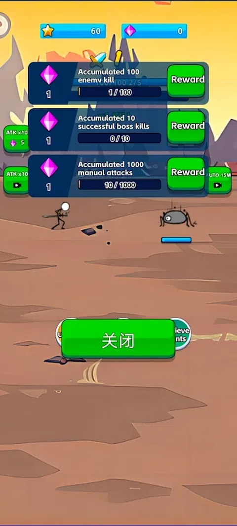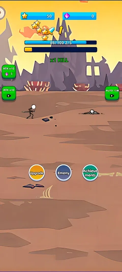 在“火柴人挑战大师”中,您可以通过点击屏幕来触发火柴人的攻击。点击越快,火柴人挥刀的速度就越快。使用您的快速反应和手指速度来发动一系列攻击并快速连续击败敌人。在您应对游戏挑战并进行激烈战斗时,时机和速度至关重要。你能释放火柴人的全部潜力并取得胜利吗?尝试一下,看看您可以点击多快
