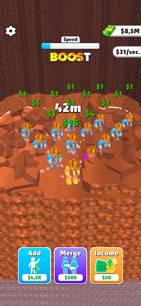 ? 跳 N 挖:地球深处之旅!? 你准备好下降到地球中心了吗?Jump N Dig 邀请您参加真正的地下冒险,其中包含弹跳角色和突破层!这款独特的超休闲游戏将带您深入地表下的神秘世界。 ?准备好探索: 感受跳跃和挖掘的力量!突破地下层以更深入。请小心,每一层都有惊喜和挑战等待着你。你能下降多远? ? 合并和升级: 组合您的角色,以获得拥有强大腿部的更大更强的角色!使用这种合并能力突破艰难的层,并为深入深处铺平道路。 ? 比赛和排名: 与您的朋友或世界各地的其他玩家竞争!测试您的技能,成为最深的潜水员,并确保您在排行榜上的位置。 ? 娱乐和成瘾: Jump N Dig 将通过其简单的控件、丰富多彩的图形和令人上瘾的游戏玩法,将您带到乐趣的顶峰。来吧,潜入地下冒险! ?免费下载并加入冒险! 立即免费下载 Jump N Dig,探索令人兴奋的地下世界探索。你准备好深入挖掘了吗?只需跳跃和挖掘