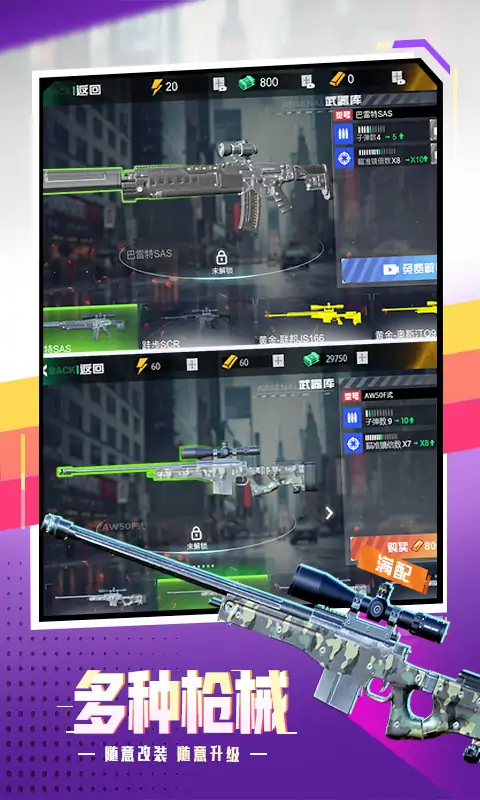 1、多样化的武器库:选择适合自己的各种武器,包括步枪、手枪、火箭筒等,不同的武器可以针对不同的场景使用。 2、多样化的角色:探索不同的角色,不同的角色有着各自的优点和劣势,让游戏更加有趣。 3、流畅的操作:操作非常流畅,无论是瞄准还是射击都非常容易掌握。