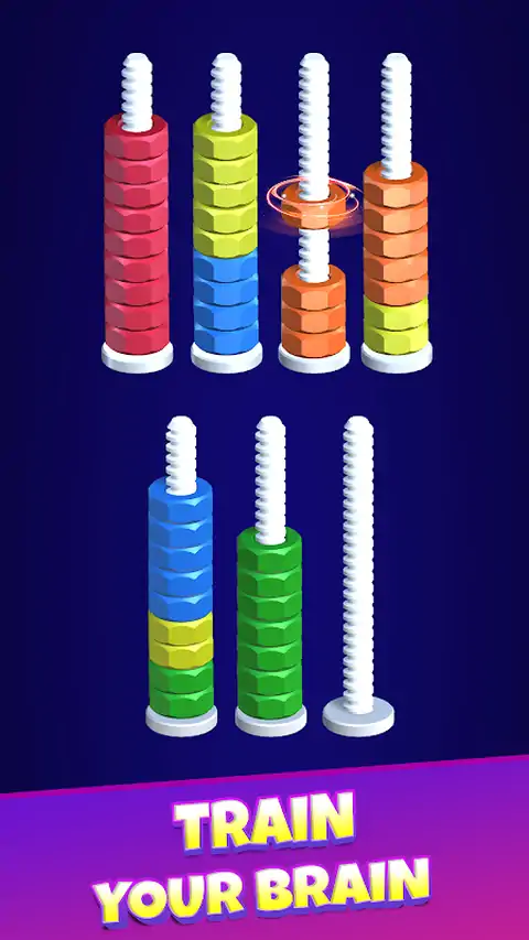 坚果分类:坚果和螺栓拼图:您的冷藏分类挑战! 《坚果分类:坚果与螺栓拼图》是一款舒缓的分类任务 - 一款将有趣的挑战和轻松的氛围融为一体的游戏。 坚果分类时,你的工作是整齐地排列坚果和销钉,创建炫酷的堆叠,随着你的前进,这些堆叠会变得更加棘手。 ?特点: - 炫酷的图形,为悠闲的分类会议奠定基础。 - 令人放松的音景,搭配平静的 ASMR 元素,非常适合您的休闲时光。 ?怎么玩: 混合了五颜六色的坚果和大头针,等待你的分类技能。 快速匹配并将它们堆叠在正确的图钉上,证明您的掌握程度。 慢慢来;不用着急。随时重新启动,没有任何处罚。 ? 目标: - 随着每个级别增加更多有趣的挑战,成为顺利堆叠螺母和销钉的大师。 - 享受分类的乐趣并提高您的思维能力 无论您是拼图迷,还是只是在寻找轻松的游戏逃脱,坚果分类:坚果和螺栓拼图都会邀请您进入一个令人满意的分类世界。 立即下载,享受正念组织带来的放松乐趣。在这个超酷的分类冒险中,看看你的技能可以带你走多远