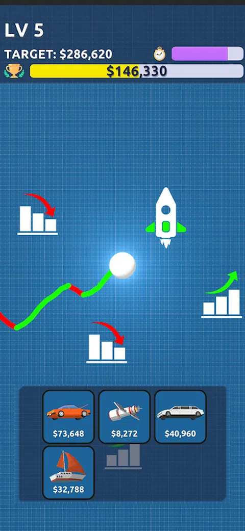 到达塔顶,成为华尔街老板。 当您实现目标并超越目标时,让您的投资者快乐地跳舞! Stocks Frenzy 超级简单,具有超级简单的一触式控制,但并不容易掌握! 注意市场指标并做出明智的选择! 发现新的投资者并管理他们的资产。 登顶致富,成为老板。 玩这个简单而有趣的股市模拟器,玩得开心