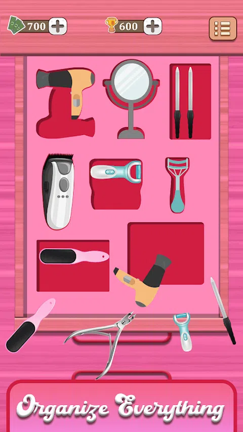 隆重推出“抽屉整理器:壁橱分类”,这是一款终极壁橱整理器,带来整理、抽屉分类的快感,以及整洁生活的乐趣以及整理游戏的乐趣。在这个包装游戏中,利用您的分类和匹配技能,开始安排、分类和整理虚拟衣柜或抽屉中的物品时,潜入智能分类和火车分类的世界。在这个充满乐趣的化妆组织者“组织游戏”中,用光圈组织补货中的物品。 在“抽屉管理器:壁橱分类”中,玩家只需将美容物品、商品、衣服、化妆品等拖放到儿童壁橱中的指定位置,就可以安排它们,从而探索应用程序管理器的乐趣。在应用程序抽屉中以战略思维挑战自己,将物品匹配和整理到衣服组织器中应有的位置,在我的整洁生活中创建一个有条理且视觉上令人愉悦的壁橱。 如何玩: - 在这个壁橱管理器分类游戏中,您会看到一个空抽屉和各种物品。 - 您必须将这些物品分类并放置在抽屉中的正确位置,方法是将它们排列在 appdrawer 的左侧。 - 只需拖动物品并将其放在正确的位置并排序 - 使用您的策略和空间技能来完成关卡。 主要特点: - 空间挑战:利用您的空间技能,将物品放置在虚拟壁橱抽屉内的正确位置。 - 各种物品:在壁橱组织器中精确排列美容物品、手表、东西、玩具、家居必需品、衣服、化妆品等。 - 衣橱整理:通过“衣橱整理”和“化妆整理”等功能,让自己沉浸在整理的乐趣中。 - 轻松分类:在虚拟空间的商品分类中,在混乱中创造秩序,享受平静而令人满意的体验。 - 智能分类:通过智能分类挑战训练您的思维,增强您在壁橱分类中的组织能力。 无论您是“整理玩具”、“整理”还是“打包游戏”的粉丝,“抽屉整理器:壁橱分类”都能满足您的整理需求,为您提供干净游戏或 ocd 游戏等乐趣。 立即下载“抽屉管理器:壁橱分类”,开始您的旅程,组织、安排和创建视觉上令人惊叹且完美有序的整洁壁橱。 释放内心的组织者,掌握整理虚拟空间的艺术。 你的整洁生活等待着你