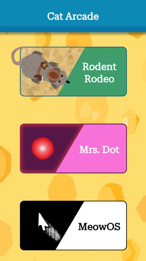 走进 Cat Arcade 的异想天开的世界,在那里,爪子的每一次滑动都会为您的猫科动物朋友带来欢乐和令人兴奋的挑战! ? 来见见 Squeaks 警长,它是一只总是在奔跑的老鼠,飞奔而猛冲,每一次转折都会点燃你猫中顽皮的猎人。 ? 点夫人住在隔壁,她总是在那里进行有趣的追逐,具有不同的模式和广泛的动作。 ? Meow OS 适用于喜欢坐在键盘上追逐其他类型鼠标的老练商务猫。也许您将有机会最终再次使用您的计算机! ?互动游戏 - 设计时考虑到您的猫的自然本能,每个游戏都承诺数小时的拍打、追逐和猛扑乐趣,刺激他们的身心。 ?每只猫的无尽乐趣 - 无论它们是年轻还是年老,活跃还是更放松,Cat Arcade 中都有适合每只猫的东西。 ? 为您的猫咪定制 - 游戏中的大多数元素都是可配置的,我们正在开发一种完全定制的模式。 开始游戏冒险,您的猫就是明星