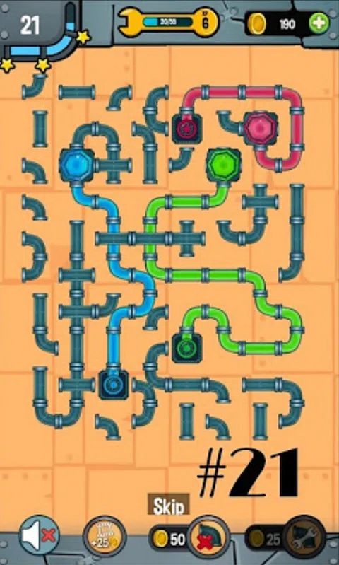 连接管道并创建从阀门到水箱的路径后,水就会流过管道,滑动拼图关卡就会得到解决