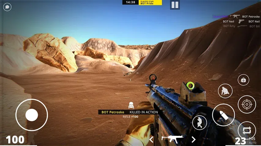 步入多人射击游戏的激烈世界,这是一款终极在线射击游戏,可在惊心动魄的多人战斗中考验您的技能。当您与来自世界各地的玩家竞争时,让自己沉浸在快节奏的动作、令人惊叹的图形和战略游戏玩法中。 选择你的武器: 从庞大的强大武器库中进行选择,每种武器都有其独特的优势和定制选项。无论您喜欢狙击步枪的精确性、冲锋枪的快速射击,还是手榴弹的爆炸力,都可以找到适合您游戏风格的完美装备。 全球多人对战: 在实时 1v1 或团队战斗中挑战世界各地的玩家。证明你的技能并提升排名,成为终极射击多人游戏冠军。组建联盟,与队友一起运筹帷幄,协同攻击,称霸战场。 提升排名并解锁奖励: 攀登排行榜并随着排名的进步获得奖励。解锁新武器、皮肤和装备,增强你的战斗能力并展示你的独特风格。你玩得越多,你就会变得越强大