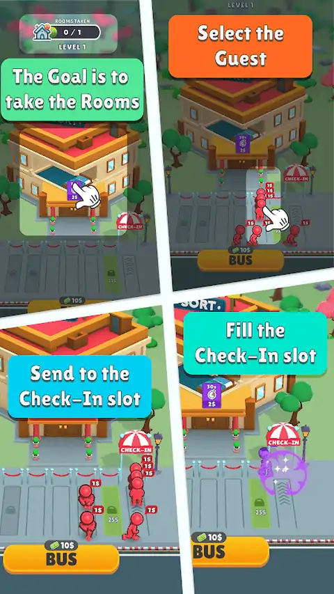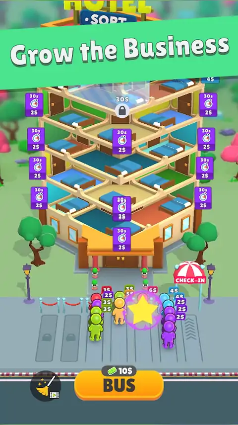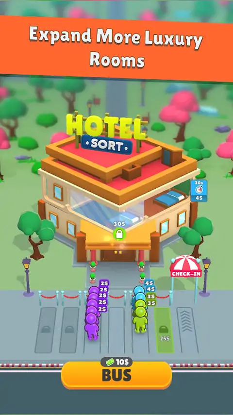 “酒店分类:经理大亨”邀请您进入酒店管理世界,成为酒店业大亨。从一家简陋的酒店开始您的旅程,然后逐步前往豪华酒店。该游戏是策略和乐趣的理想结合,适合休闲游戏。 在这个引人入胜的游戏中,您的任务是管理乘坐公共汽车抵达的稳定客人流。每个客人都与一个特定的数字相关联,表明他们的财富。巧妙地将它们分类并匹配到合适的酒店房间,为您的酒店带来生机和刺激。 该游戏旨在通过简单的控件和简单的机制轻松玩游戏,适合所有年龄段和技能水平的玩家。无论您有空闲时间还是可以沉迷于扩展游戏,“Hotel Sort”都是快速娱乐和身临其境的会话的完美选择。 增强您的酒店涉及战略升级。将您的房间提升到更高的级别,以吸引更富有的客人,从而增加您的收入并提高您酒店的声誉。 每个新级别都会带来新的挑战。成功填满所有房间以推进并解锁更有趣和复杂的关卡。您的管理敏锐度和战略规划是扩大酒店帝国的关键。 踏上增长之旅,将您的简陋建筑转变为著名的酒店目的地。有效地管理资源,制定客房分配策略,并看着您的酒店业务达到新的成功高度。“酒店排序:经理大亨”提供了一个独特的机会,可以体验经营酒店的刺激和挑战