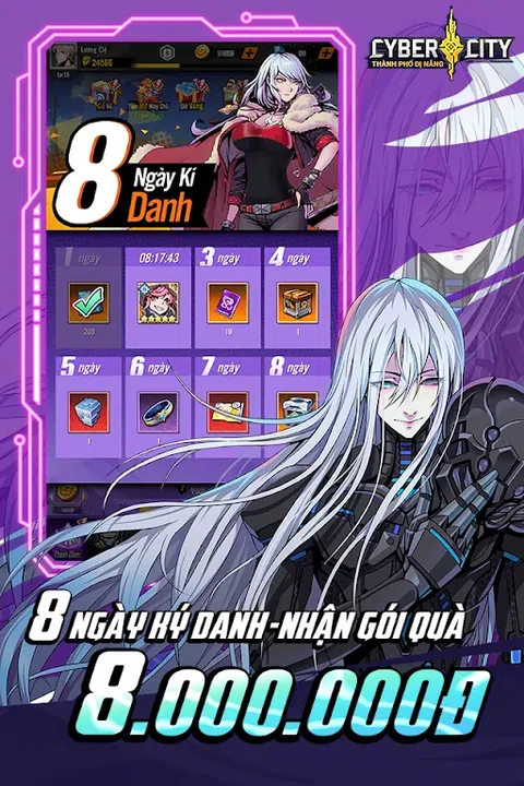 网络城市-超能城市围绕着未来世界,科技已经发展到最先进的水平,人们必须与机器一起生存。你将扮演时间线主人的角色,建立、招募和训练变异战士。多维空间之间的挑战,赢得荣耀与力量 进入游戏并获得 1,020 次旋转 - 扭蛋到商店 Cyber City承诺给玩家1020次旋转,每10次旋转一定会产生一个英雄SSR。完整的SSR英雄阵容触手可及。 网络标准图形 - 创建完美形状 引领潮流,赛博城推出“CYBER STANDARD GRAPHICS”—盛大再现最真实的赛博朋克时代。结合生动的音效,将为玩家带来绝佳的体验。 沿着战场旋转 - 用一只手控制整个服务器 独特的竖屏玩法,给你全新的卡牌游戏体验。加上所有战斗中的跳过功能。游戏操作从未如此简单,一键掌控全服。 8人小队—战术决定胜负 《数码城》允许玩家自由地将自己招募的通用卡牌排列成一支完整的小队,最多可有 5 个主力位置和 3 个辅助位置。战争围绕着 5 种力量展开:魔法、武术、机械、秩序和混沌。集思广益,制定策略并安排英雄团队做出战略决策,这将决定赛博朋克竞技场的成败